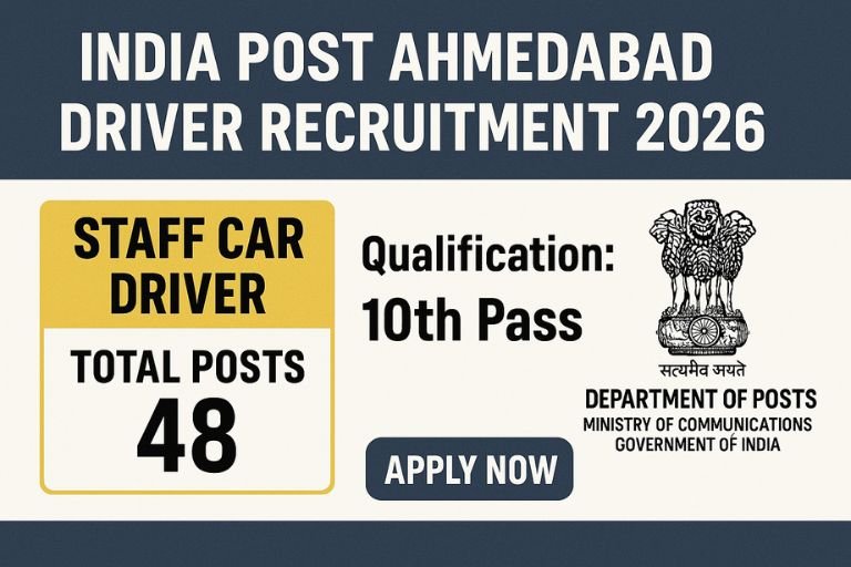 India Post Ahmedabad Driver Recruitment 2026 : Apply Offline for 48 Staff Car Driver Posts